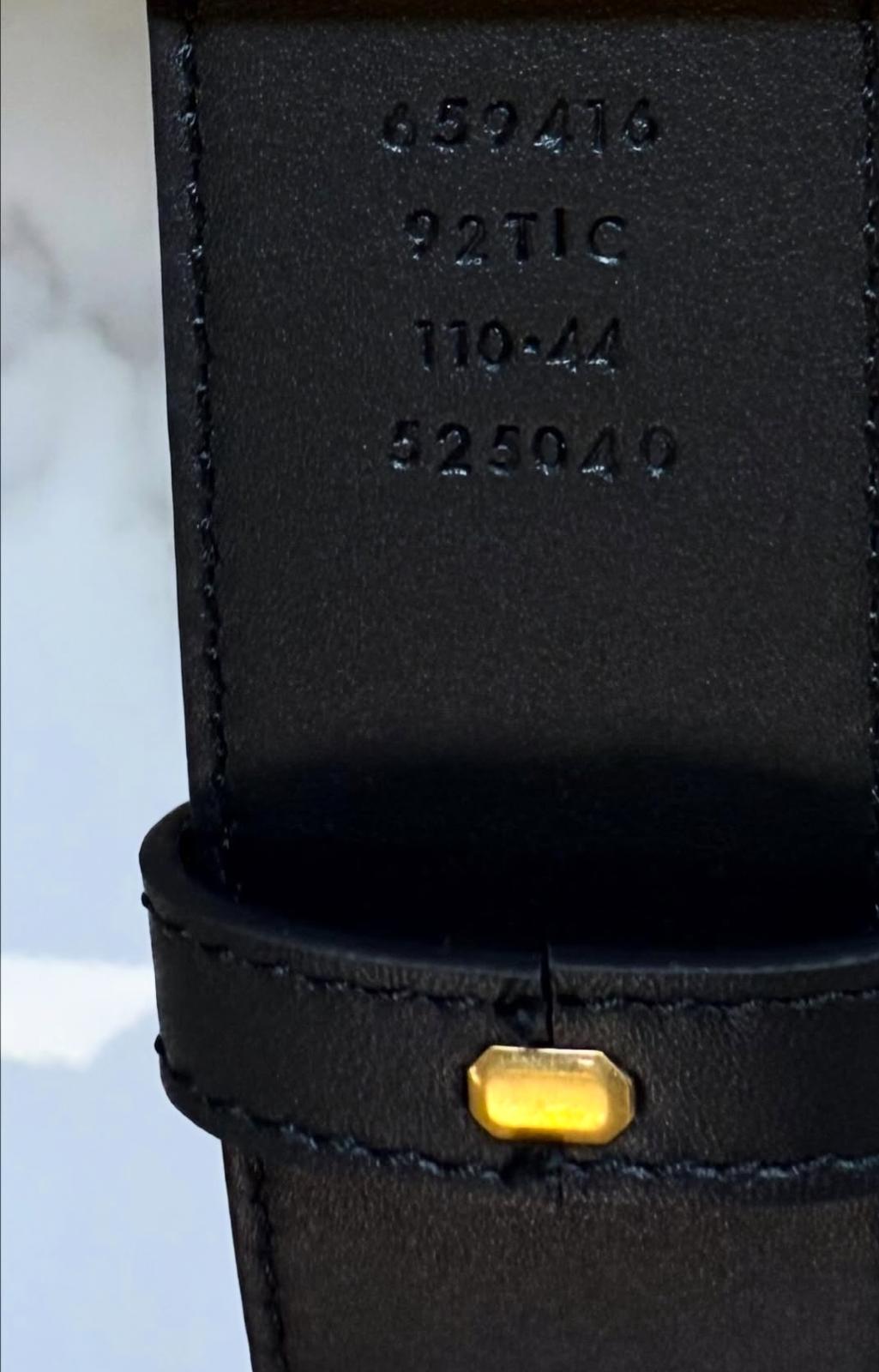 Cintura Gucci reversibile in pelle liscia, monogram gg supreme da un lato,e nera dall’altro. È definita dalla fibbia doppia G in ottone, un simbolo proveniente dagli archivi Gucci degli anni 70. Taglia 110 cm. Alta 4 cm.