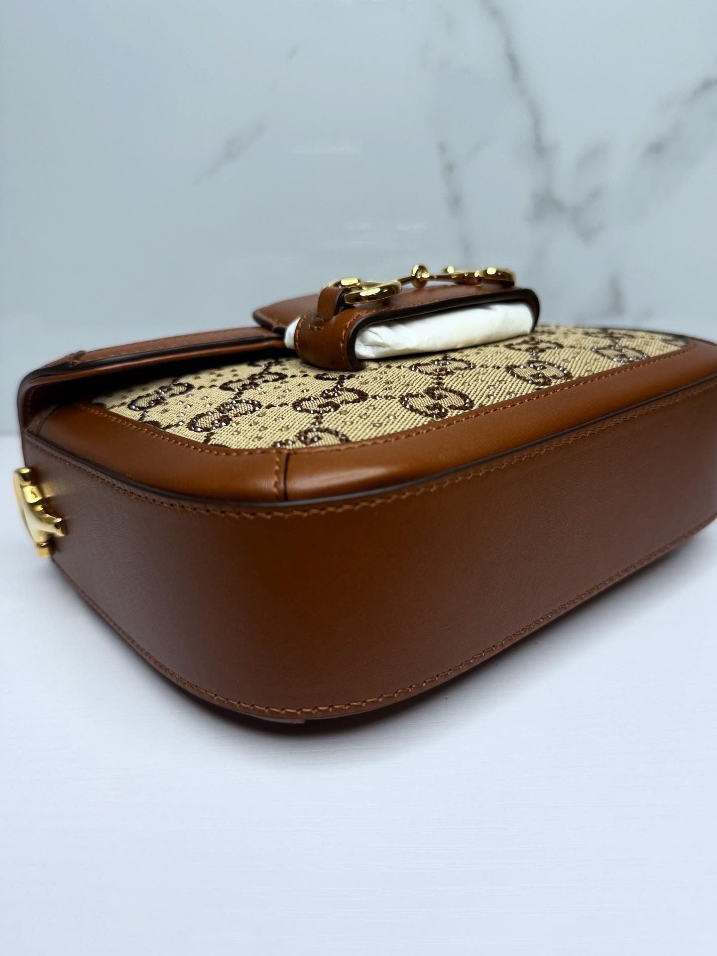 Gucci modello Horsebit 1955, con cristalli naturali. Nuova, mai utilizzata.