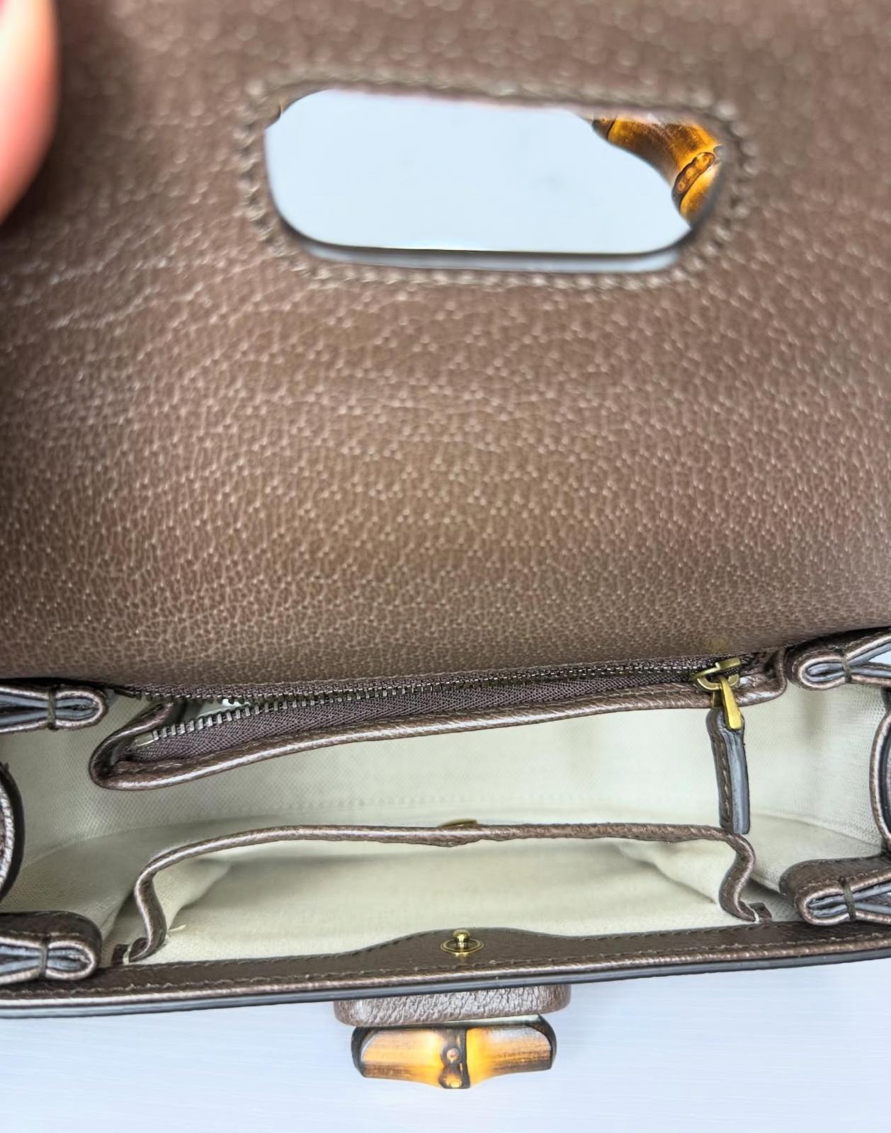 Mini Jumbo Bamboo Gucci in canvas e pelle marrone. Iconica del brand. Nuova, mai utilizzata. Completa di doppia tracolla: una in pelle, e una in tessuto con nastro web. Corredata di dustbag e portacarte con specchietto.